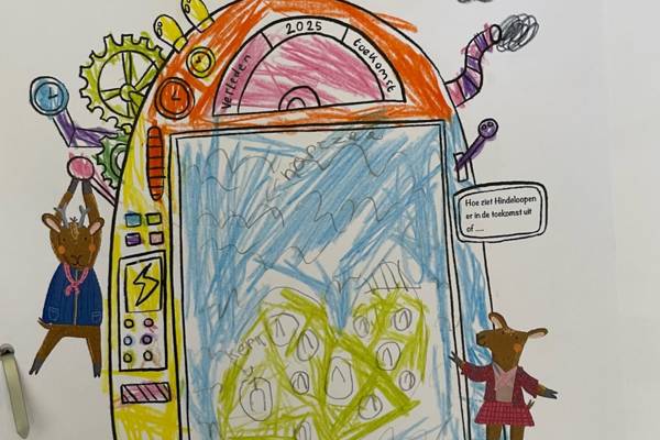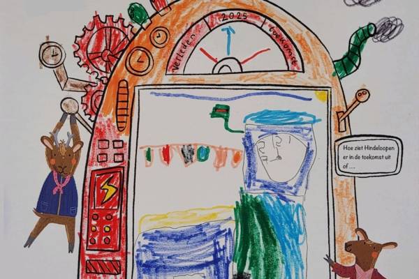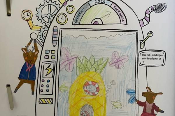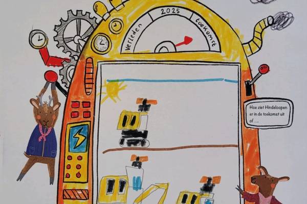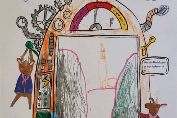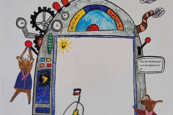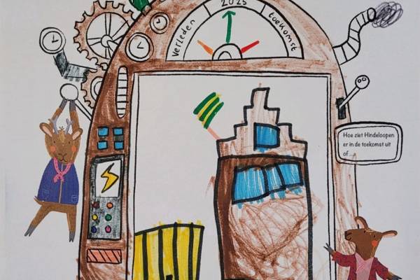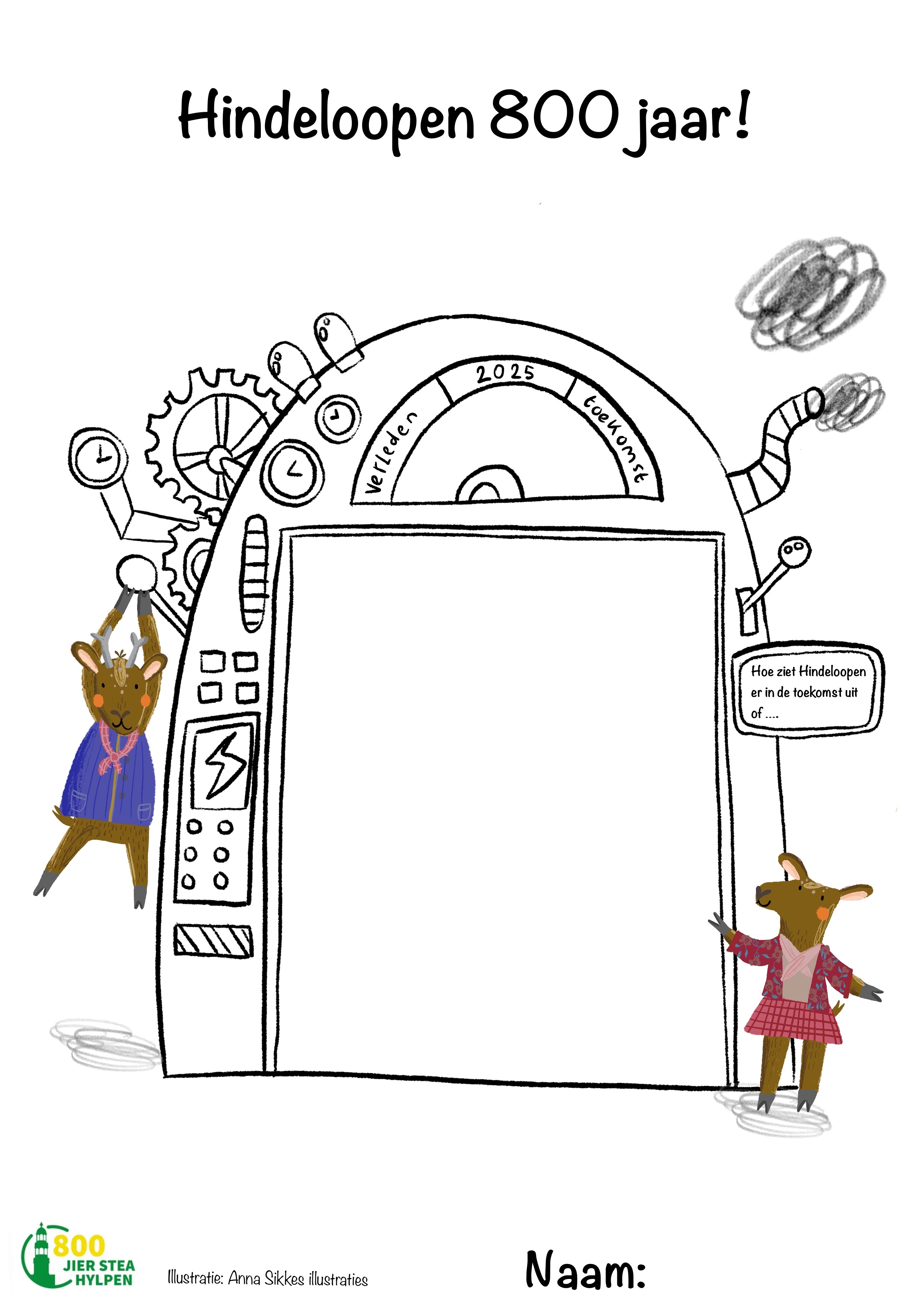 De kinderen van basisschool de Skulpe in Hindeloopen zijn creatief aan de slag gegaan met een speciale kleurplaat rondom het thema 800 jier stea Hylpen. Het ontwerp – een fantasierijke tijdmachine – laat zien hoe Hylpen er vroeger, nu of in de toekomst uit zou kunnen zien.